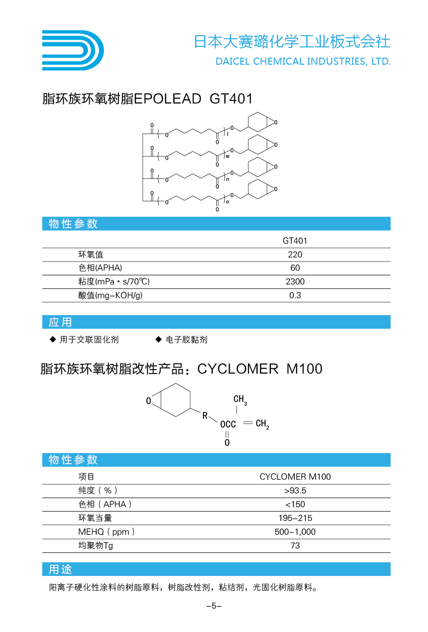 脂肪族环氧树脂CELLOXIDEEPOLEAD GT401和CYCLOMER M100